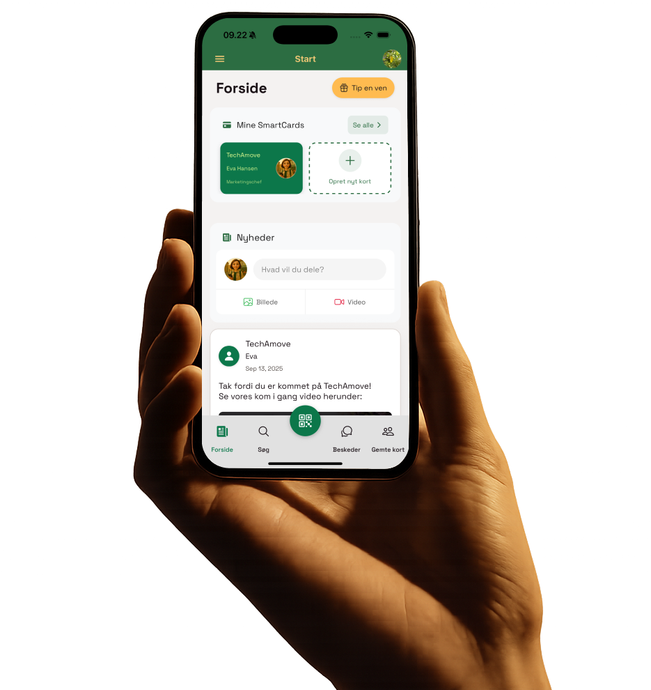 Et SmartCard er dit digitale visitkort med en personlig QR-kode. Når nogen scanner koden, gemmes dine kontaktoplysninger direkte på deres telefon.